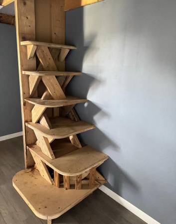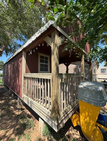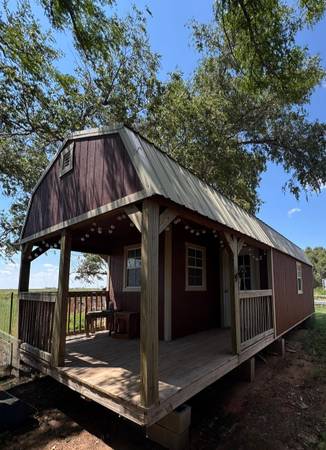 Shed i was in process of making it a tiny hime but plans changed and went. Different direction. it has a small custom built staircase and upper level built a handrail it had electrical wiring run had lights only has a standard plug in place for temp power but can be hard wired in . Doesn't have any issues I actually stayed in it for a while. I am open to offers call me or text 8o6.24o.4737