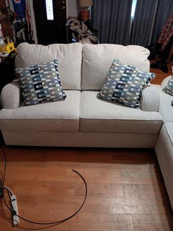 Cloth Couch and Loveseat bought new 2 years ago. Put in my home, covered with new white sheets and never used. Just like new.
