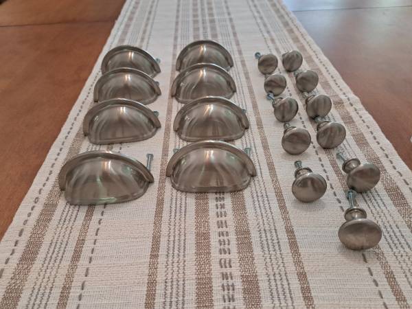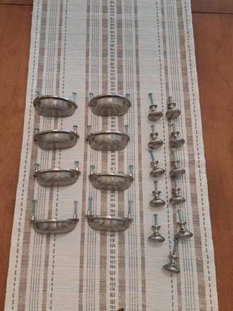8 vintage 3-inch drawer pulls and 11 knobs.