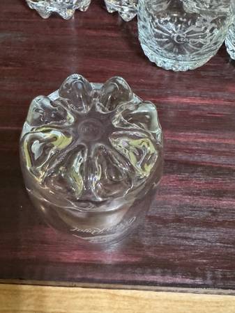 Beautiful starburst bottoms which are heavy/weighted and brilliantly refract light. Would look wonderful on s lighted bar display or bar cart! They measure in size and shape approx 3”W x 3.5”H.