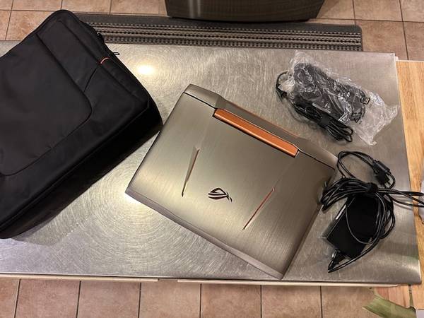 This is a used Asus Republic of Gamers Gaming Laptop. It has an i7 CPU, 32 Gigs of RAM and Nvidia M980 graphics. It is in excellent shape and battery will hold a charge for only 20 to 30 mins max. Comes with 2 AC power supplies and a nice carry case. 17.3 inch screen and 256Gb SSD with a 1TB Laptop drive.